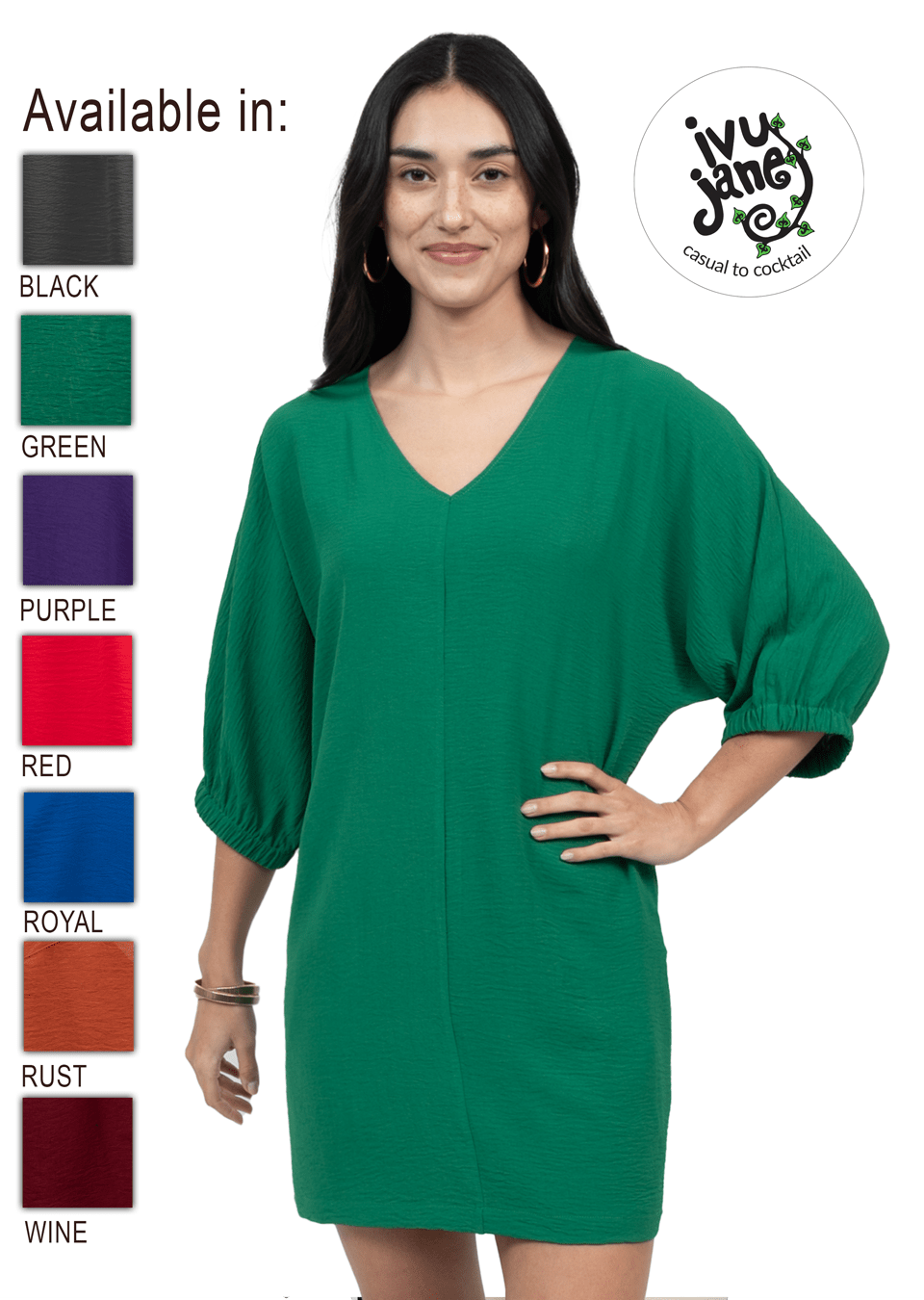 Stay in style this winter with the Dolman Elastic Sleeve Dress by Ivy Jane. Available in solid green and these rich colors will elevate any outfit. The elastic sleeves add a unique touch and ensure a comfortable fit. Don't miss out on this must-have piece for your winter wardrobe!
