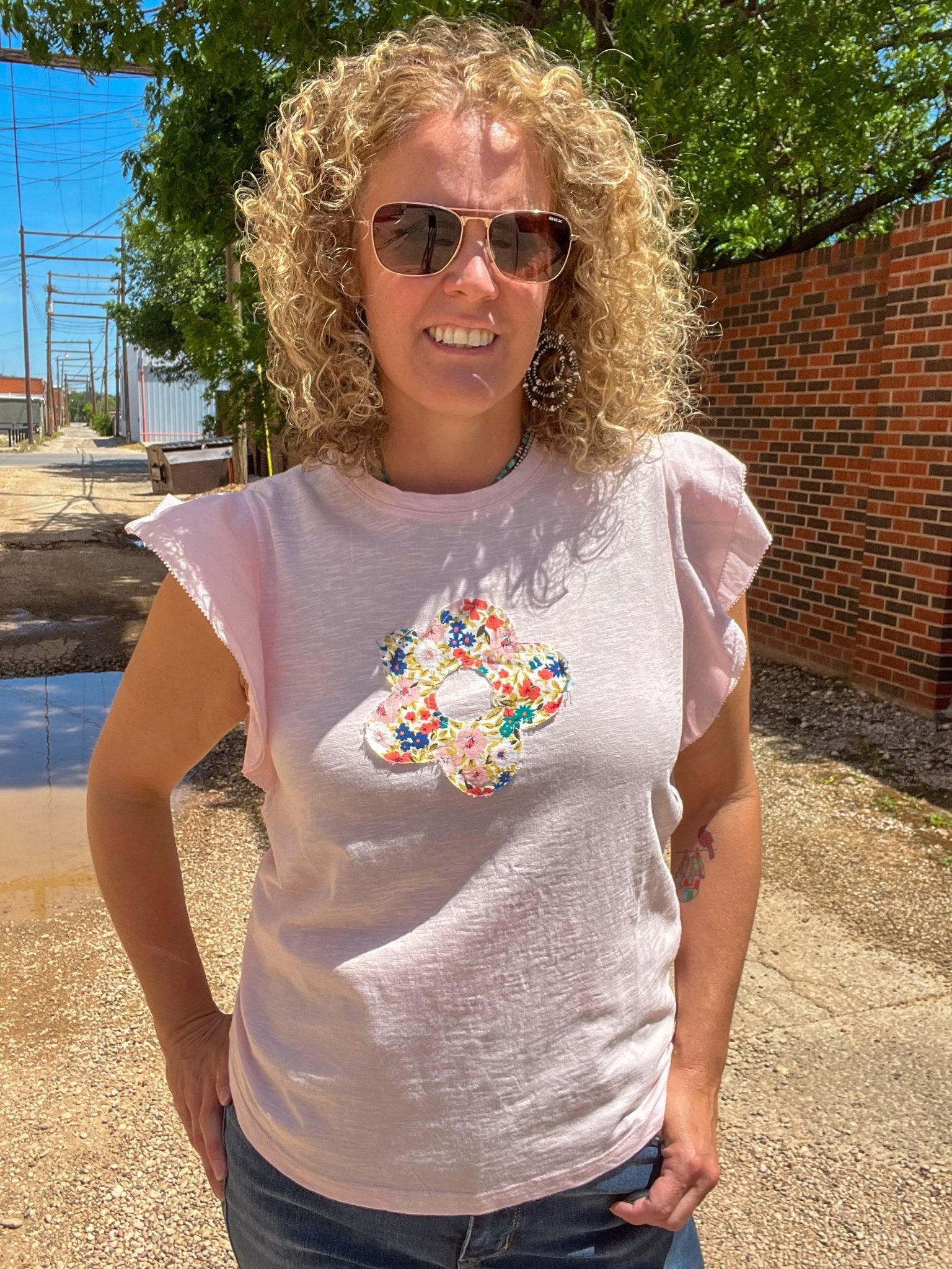 "🌼 Spring into style with the Ivy Jane Daisy Tee! It’s adorable under the Pop Flower Blazer by Ivy Jane! 🌸 This playful design features a dainty daisy print and is perfect for the fashion-forward trendsetter. 🌺 Add a touch of whimsy to your wardrobe with this must-have piece. 🌼"