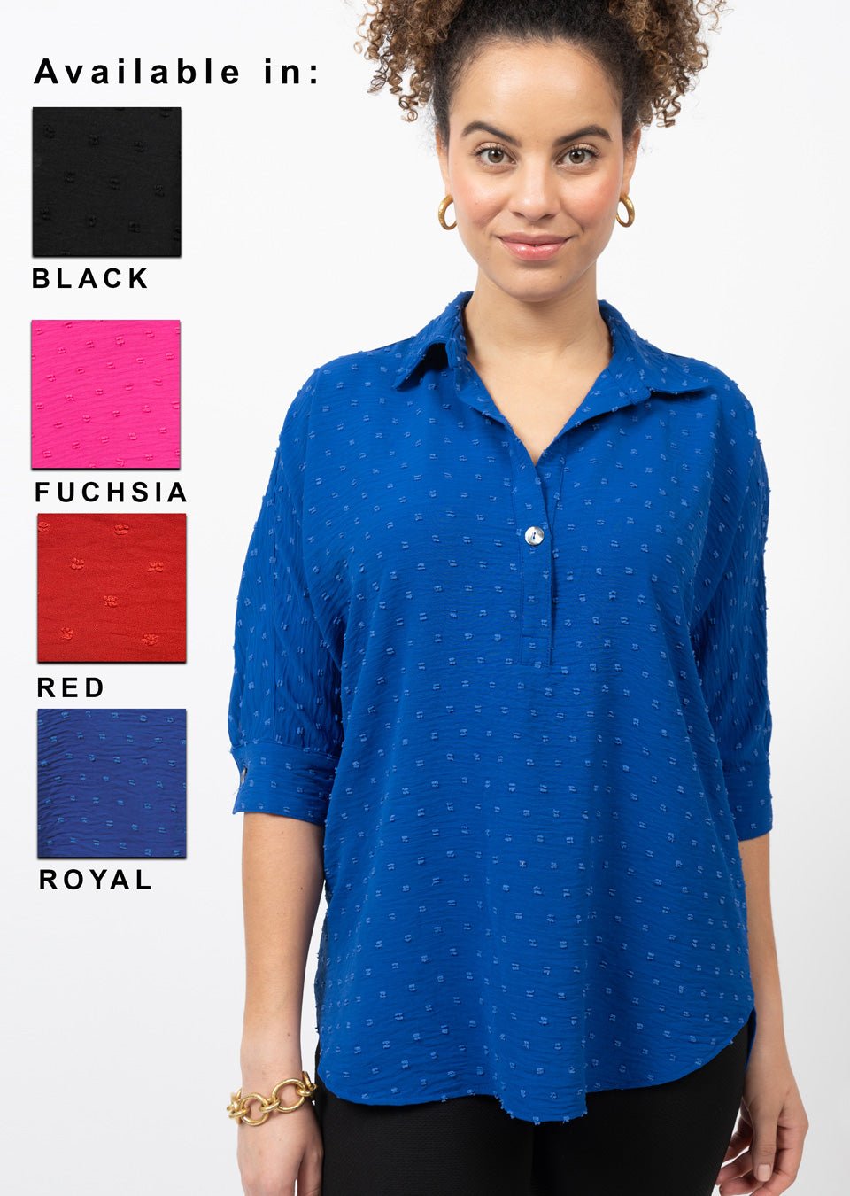 Make a statement with our Pop Collar Popover Top. Featuring a fun pop collar and beautiful pop pattern, this lightweight top is effortlessly stylish and perfect for any occasion. Its timeless design promises to keep you feeling and looking your best.