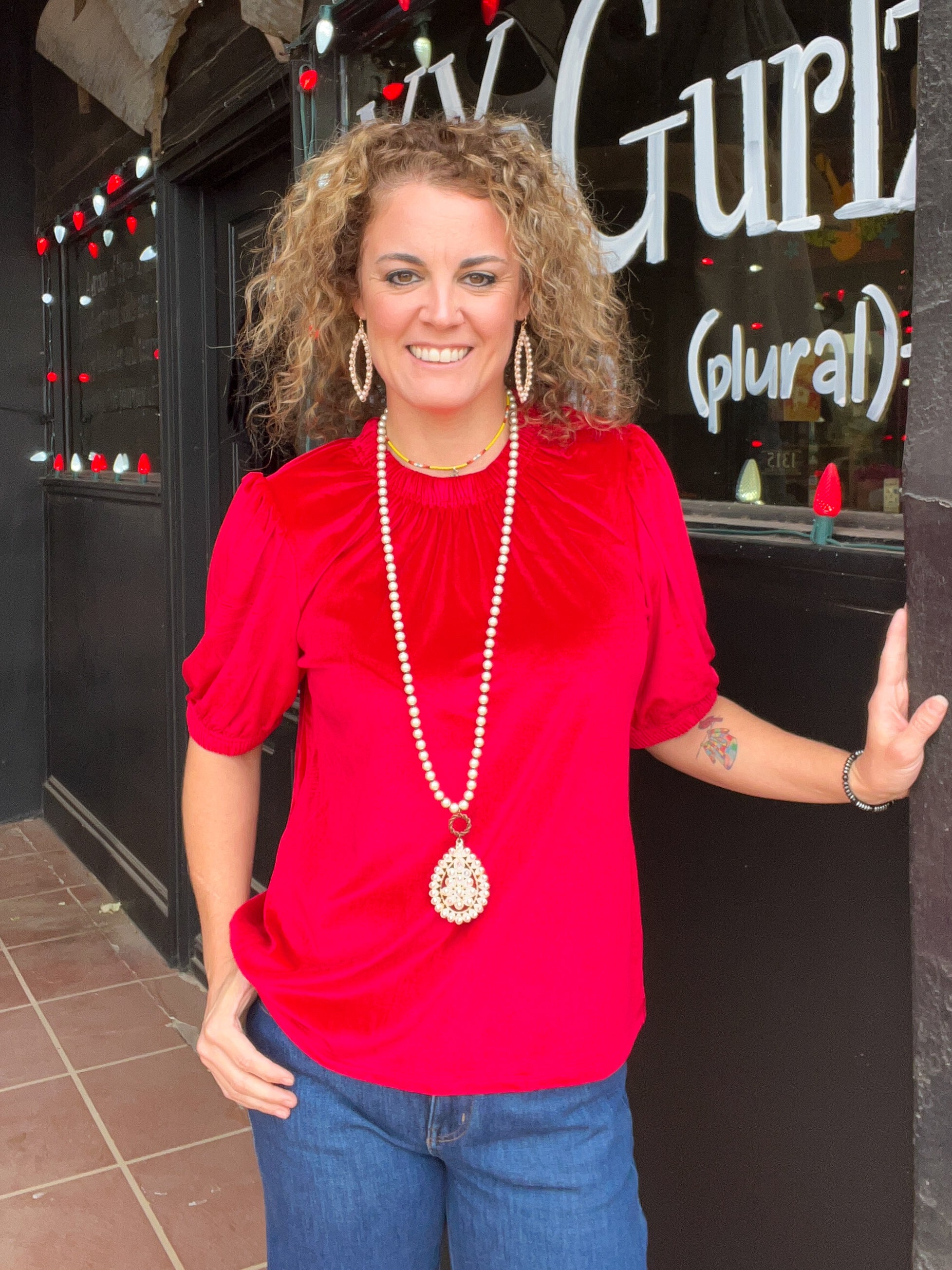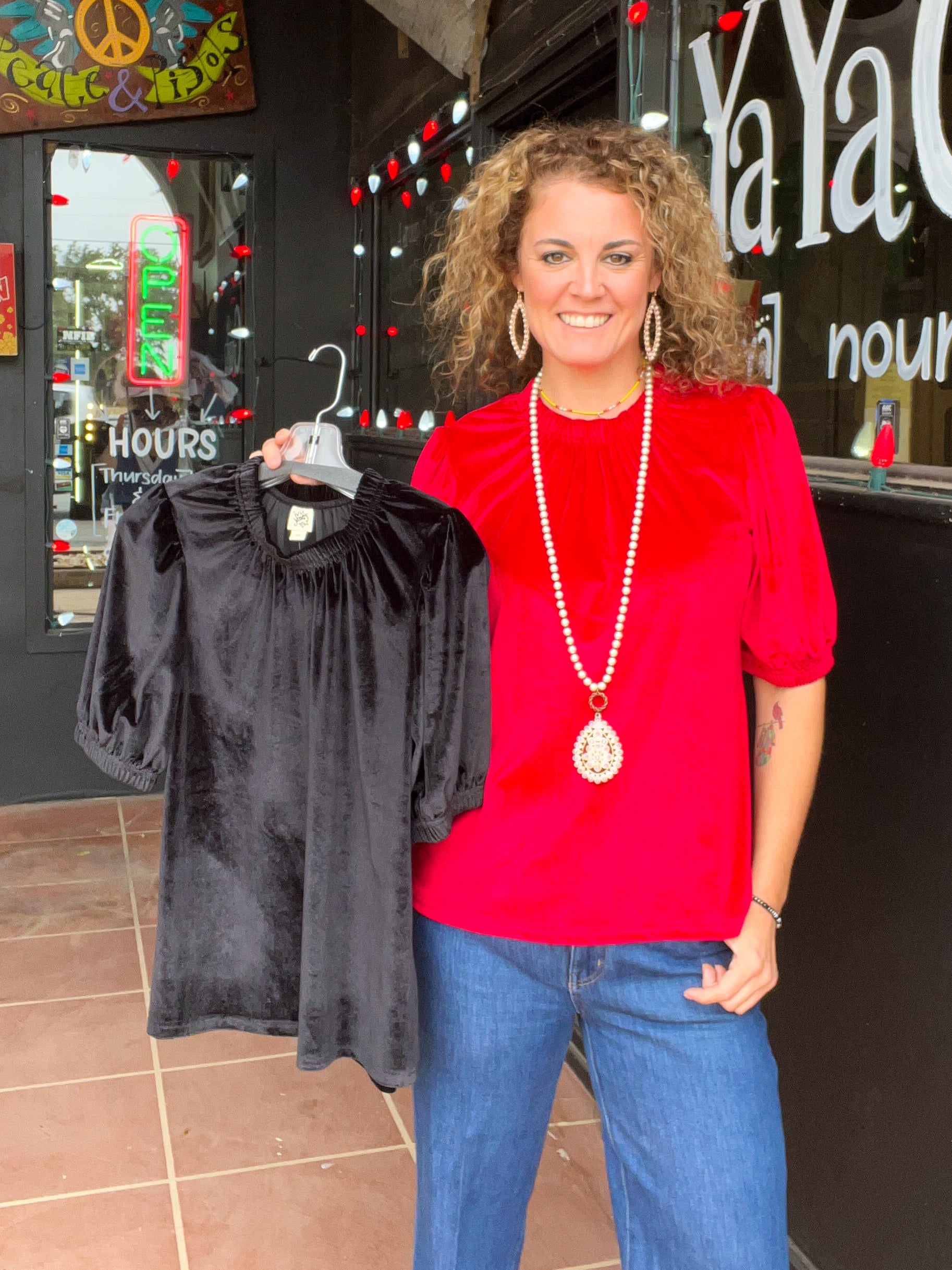 Elevate your wardrobe with the Velvet Rouched Neck Top by Ivy Jane. Crafted from a stretch velvet fabric, this top combines comfort and style. Choose from 2 versatile colors for a versatile addition to your collection. Perfect for any occasion.