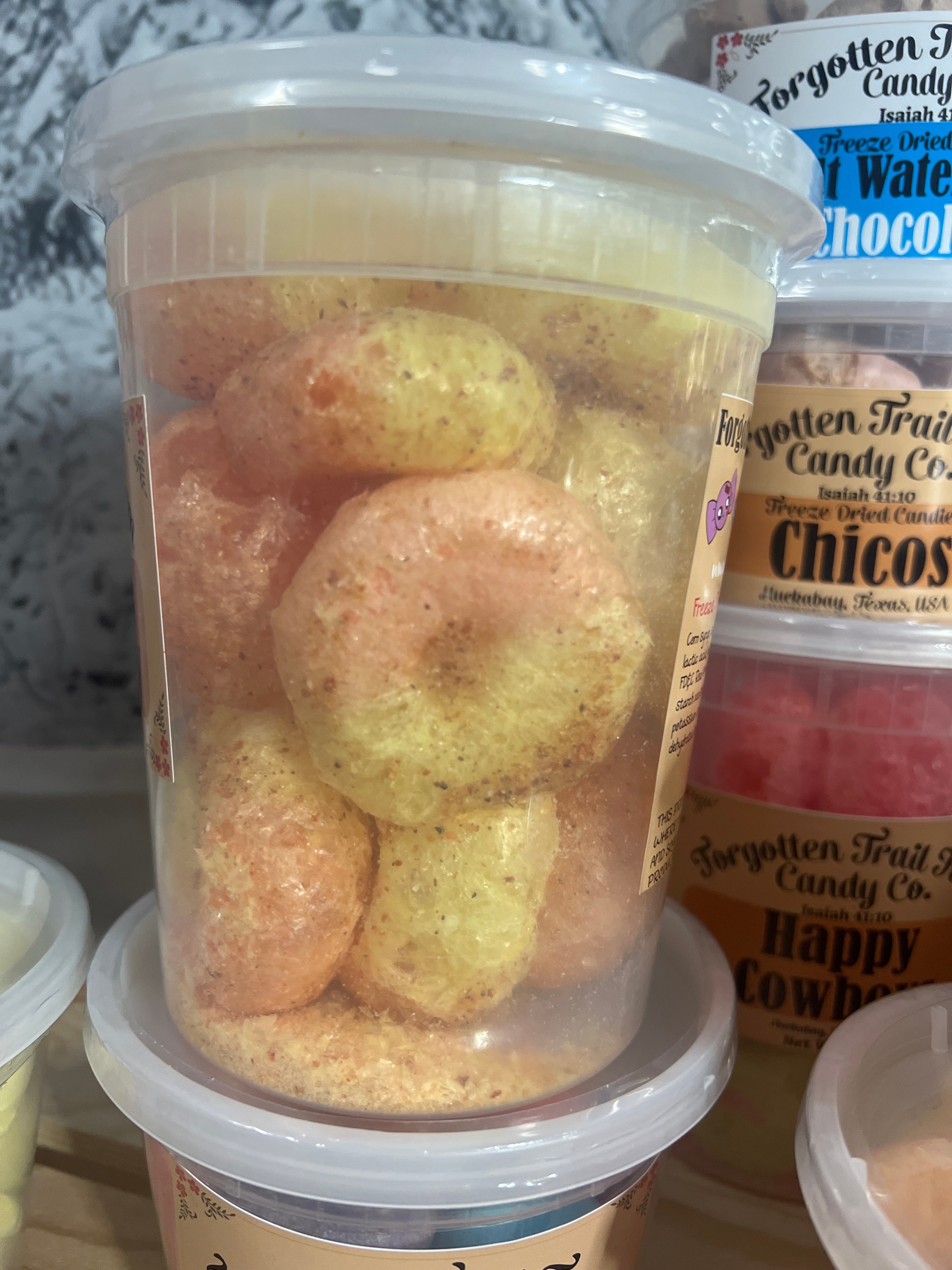 Candy lovers can't resist gummy peach rings, but after their freeze dried transformation, they are down right addictive. Enjoy your gummy favorite with a light crunchy twist. Now with Chamoy & Tajin!