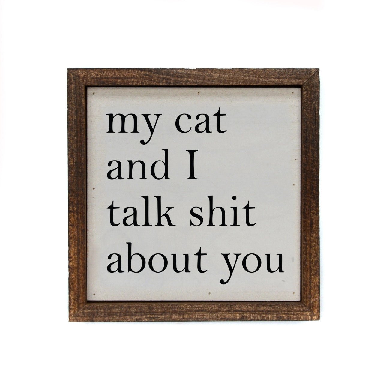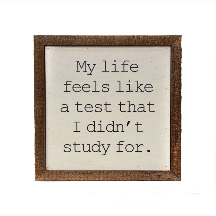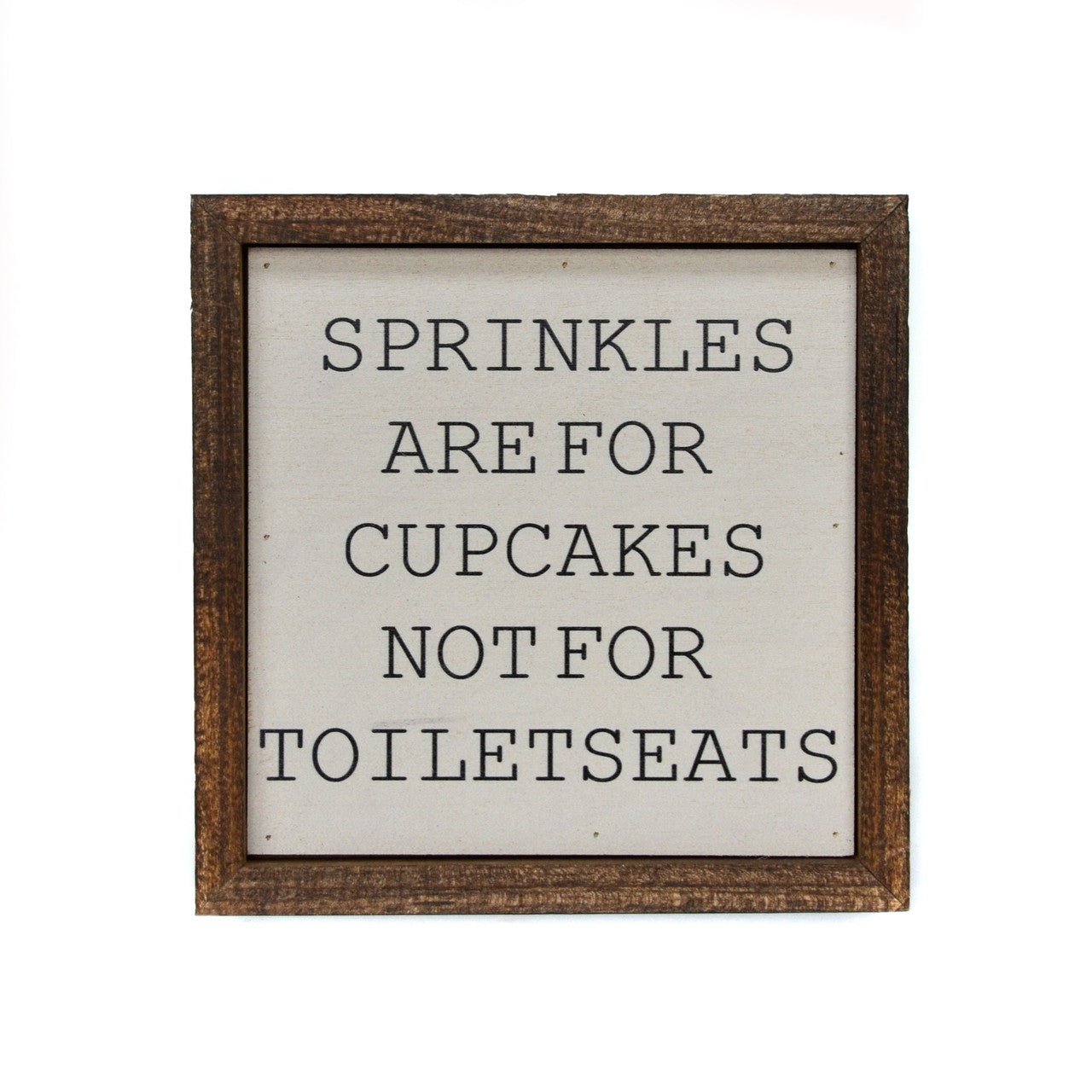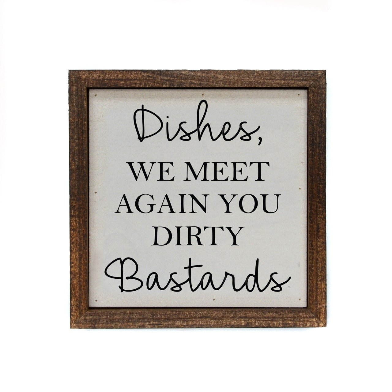Signs are built into a wooden box frame with a rustic touch and are hung directly off the frame or will stand up right on a table or shelf.