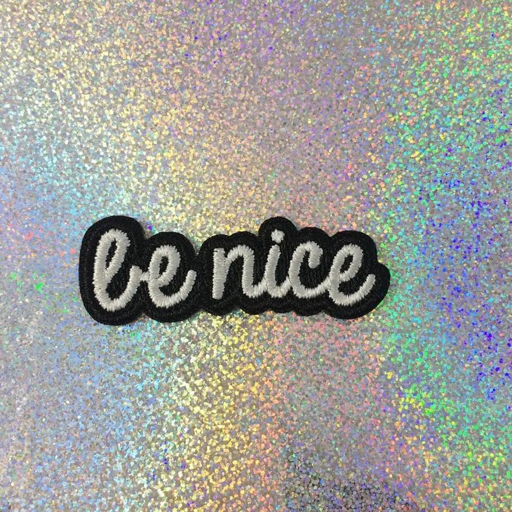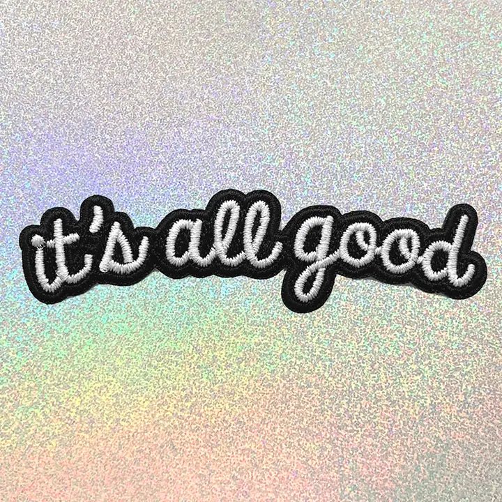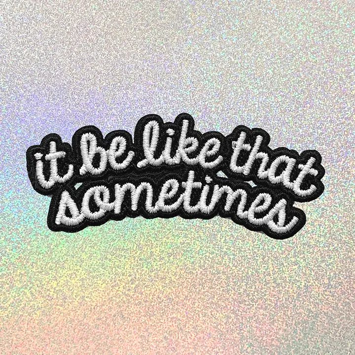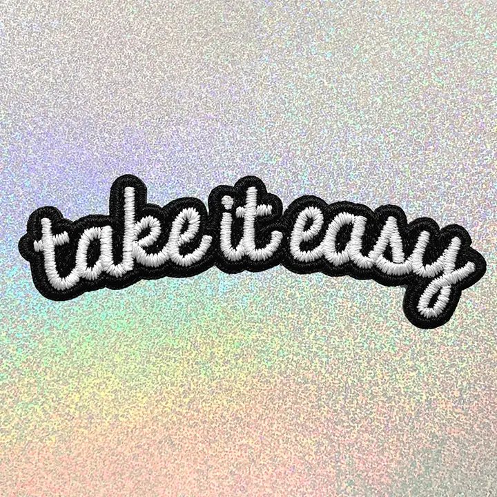 Features fave phrases as dainty, subtle patches in simple black & white embroidery inspired by hand lettering.