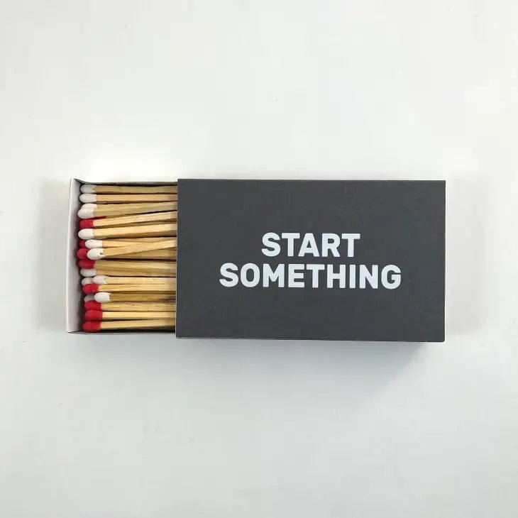 Get a little motivation, or at least a welcome addition to your marshmallow roast with an inspiring box of oversized fireplace matches. Foil-stamped box with a mix of red- and white-tipped matches. Box is 4.25 inches by 2.5 inches by .75 inches. Contains approximately 60 matches.