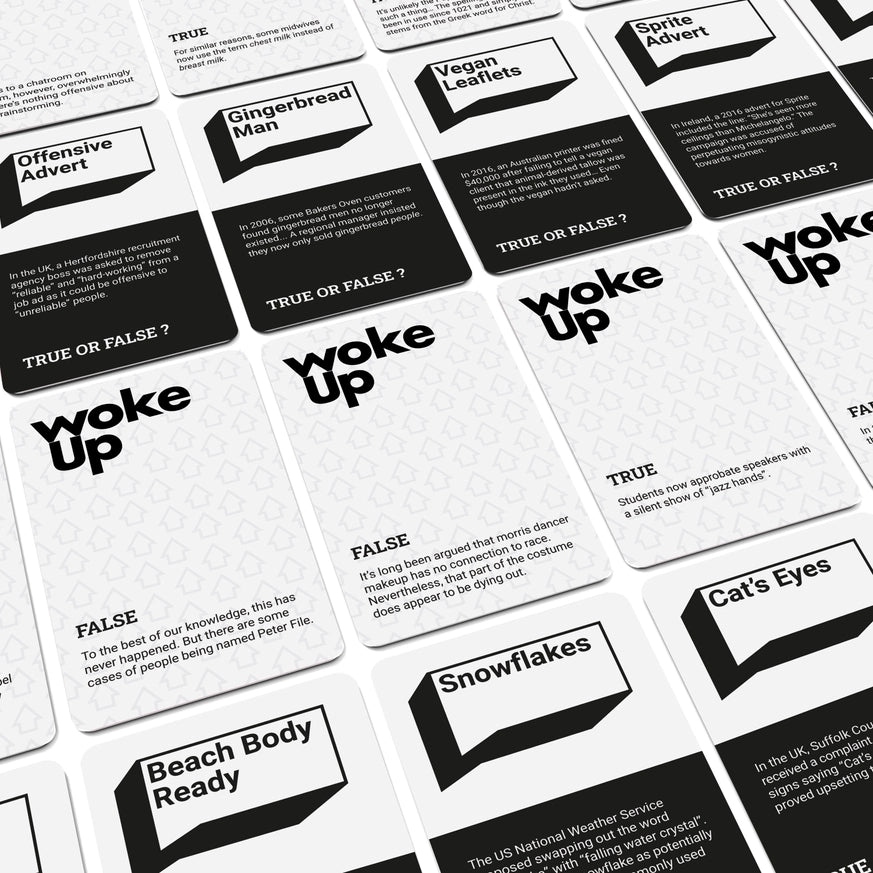 Answer questions, stack cards… Score points! Whoever has the tallest tower at the end of the game WINS in this card-stacking cancel culture game that tests your knowledge of political correctness. The true or false trivia cards contain news stories relating to woke culture. You’ve gotta decide if you think the story is real or fake. Get it right and keep the card… Fold it in half, stack it, and bask in the glory of how much taller your tower is than anyone else’s – especially your parents! Woke Up is an incredibly current cross-generational card game where, depending on your views on woke culture, you’ll either be seriously shocked or smugly satisfied.
