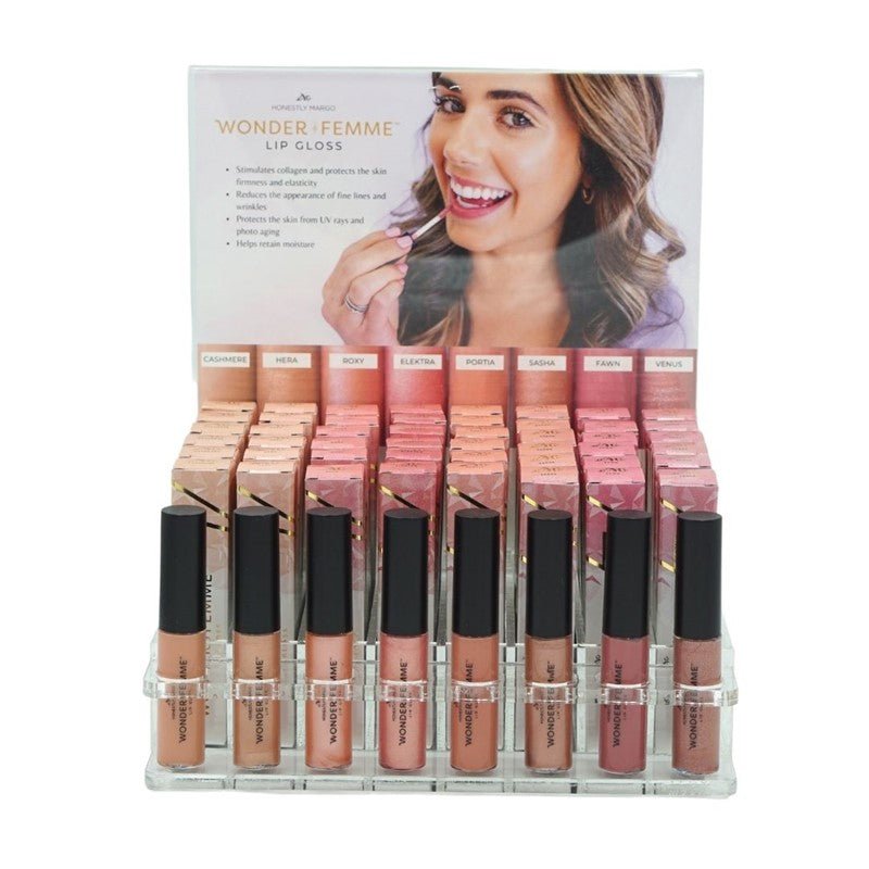 Honestly Margo Wonder Femme Lip Gloss is a moisturizing lip gloss that gives more than great color — it's HYDRATING COLOR + BENEFITS. This fresh formula keeps your lips moist, shiny, plump, without any sticky or tacky feeling. The combination of unique natural ingredients is full of powerful antioxidants, vitamins and minerals that are beneficial to the lips.