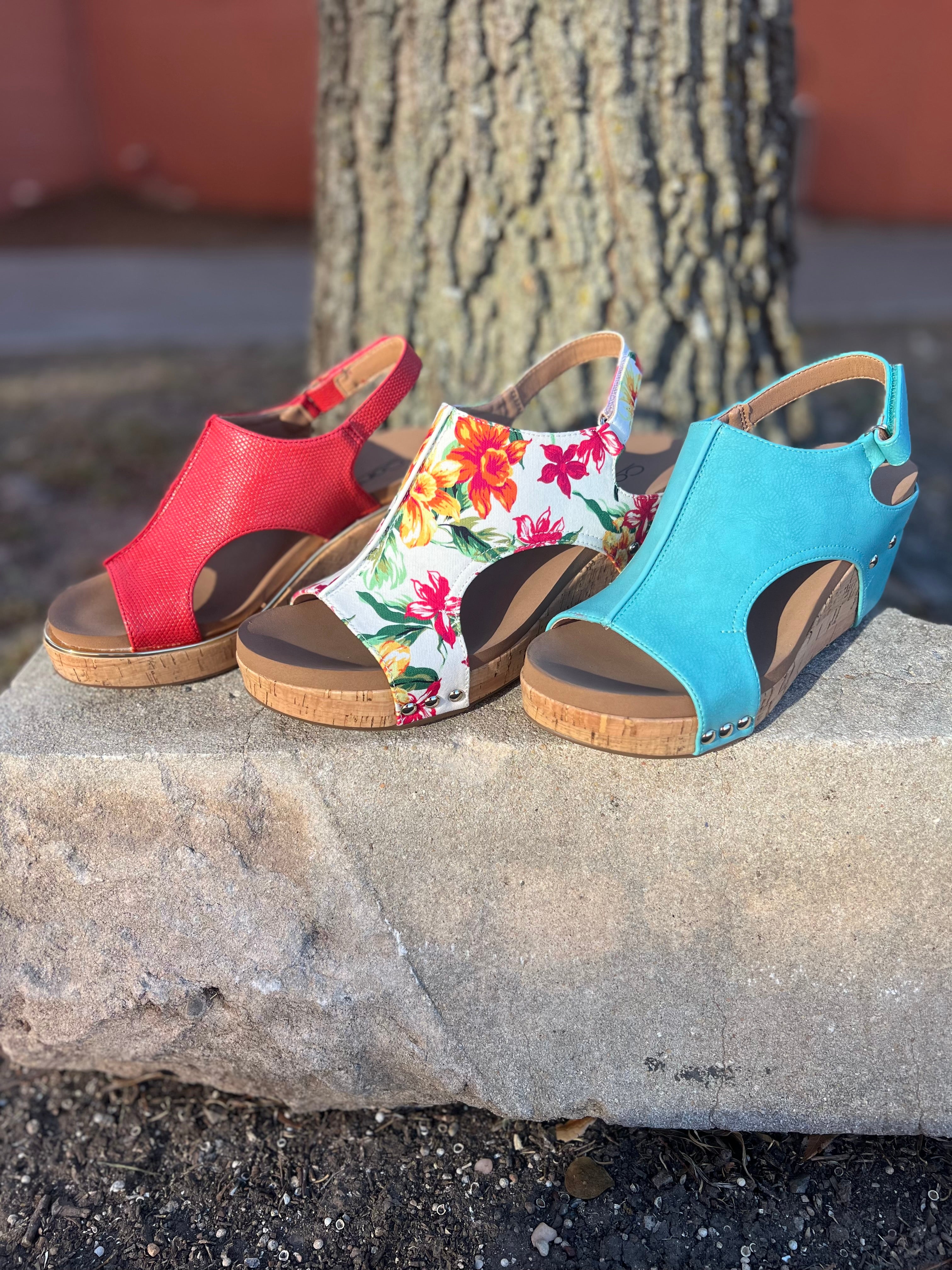 Get ready to rock those spring vibes with the Carley Wedge by Corky's! This playful wedge will elevate any outfit, while keeping you comfortable with its corky spring shoe design. Step into style and comfort with the Carley Wedge.