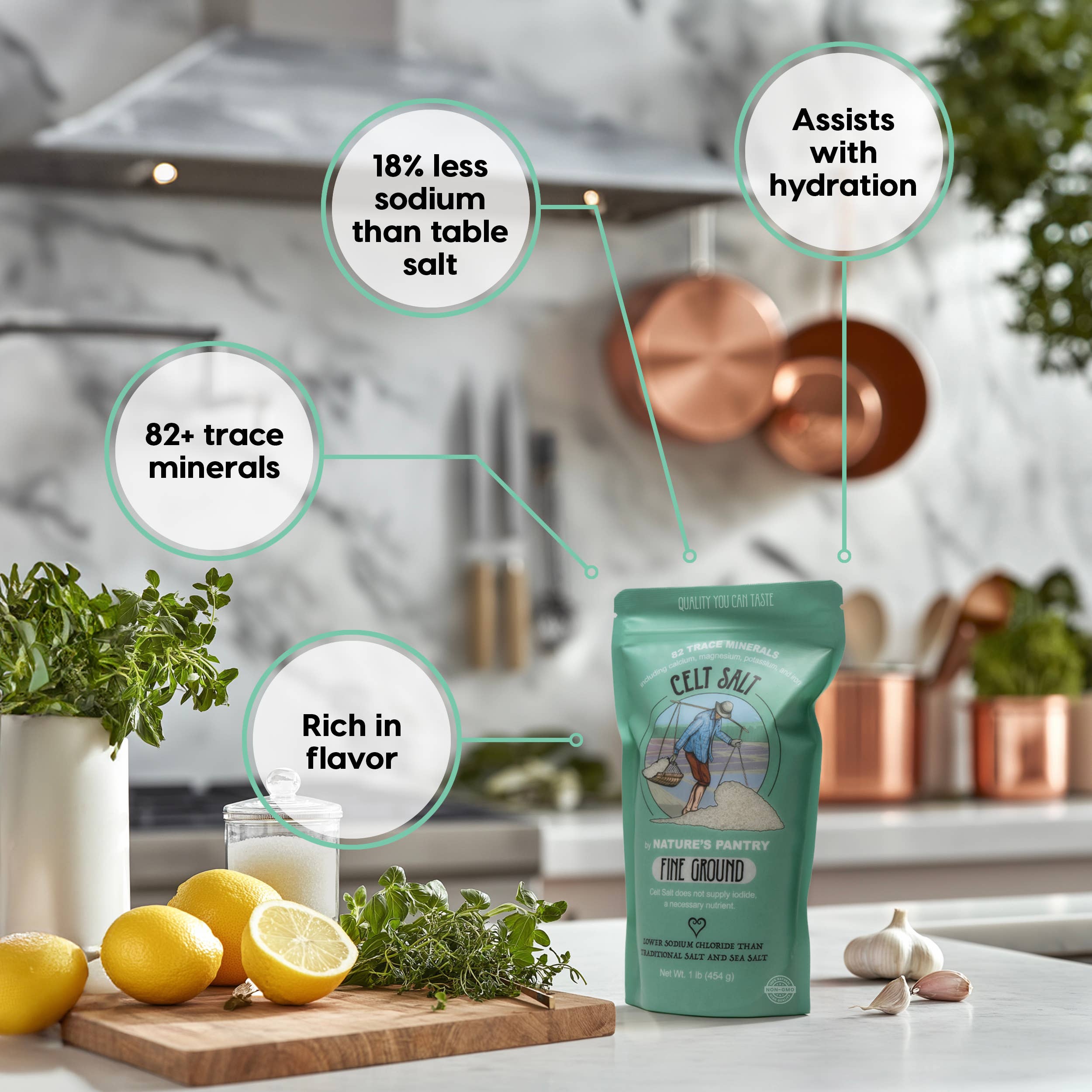 Fine Ground Celt Salt proudly carries non-GMO verification, Kosher certification, and is recognized as a lower sodium and paleo-friendly option.