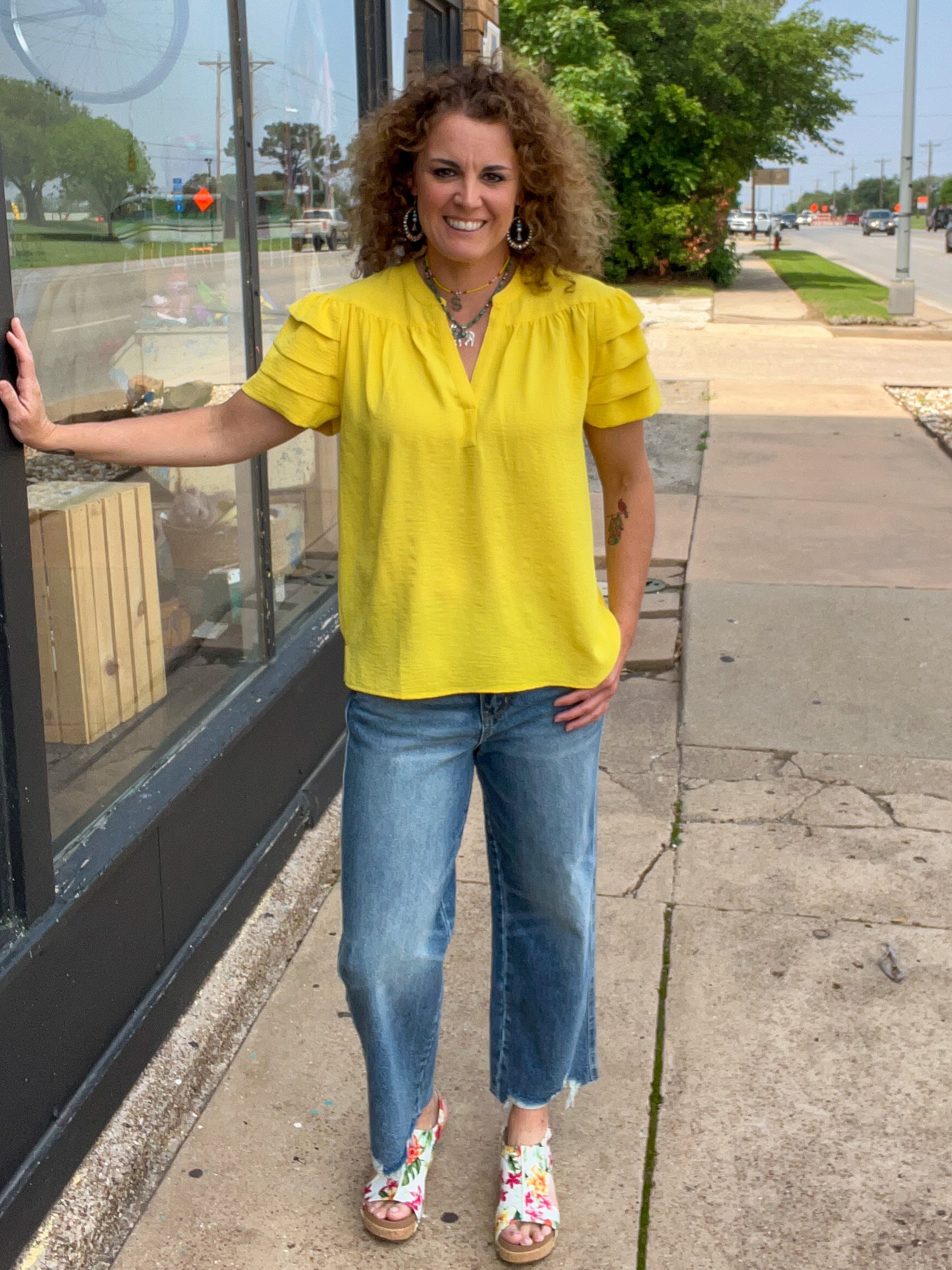 summer is 5’7” & is wearing size 7/28. Typically she wears a 9, & medium top.