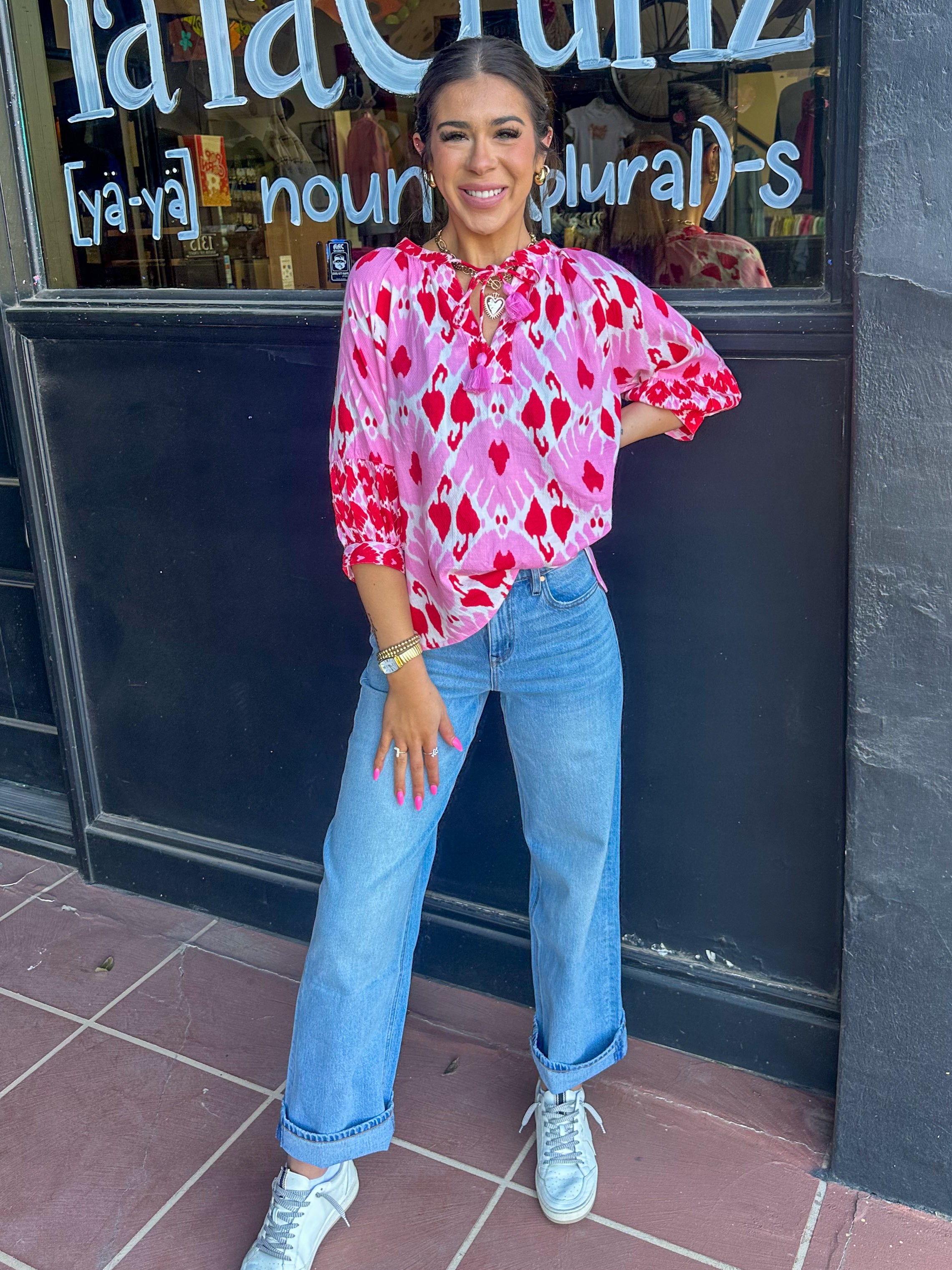 This playful Ikat Your Heart Top in Ivy Jane's spring red is bound to be a wardrobe staple! Light and breezy, it'll keep you cool on sunny days. Channel your inner boho-chic with this quirky top that will surely warm your heart (and your style) all season long.