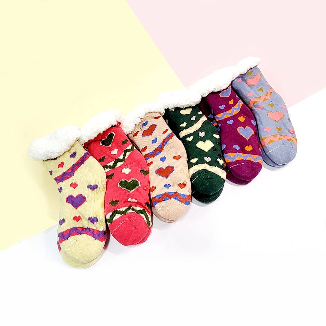 Cozy up with Lil Ya Ya Non Slip Winter Socks! These furry lined socks not only keep your feet warm, but also prevent slipping with their non-slip feature. The cute heart design adds a playful touch to your winter wardrobe. No more cold feet or sliding around - these socks have got you covered!