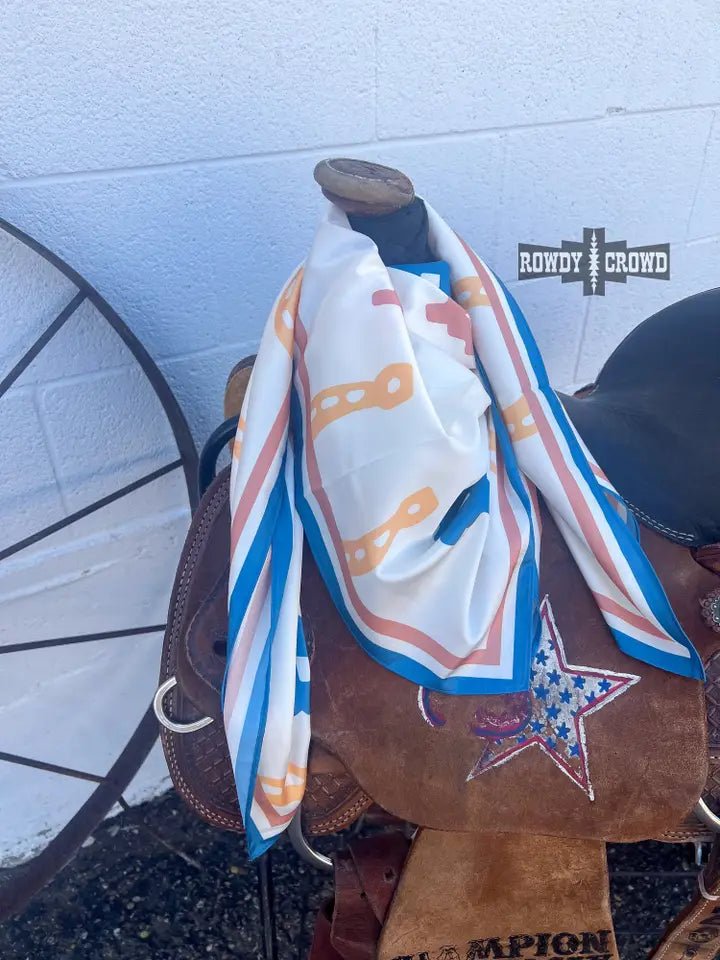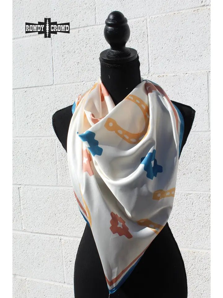 Unleash your wild side with the Lucky Wild Rag. This versatile accessory can be worn as a top, in your hair, or on your bag. With a horse shoe print and shiny finish, you'll stand out in style. Show off your passion for all things untamed with the Lucky Wild Rag.
