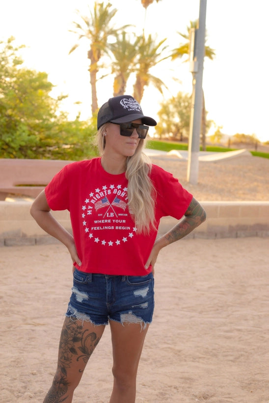 Stand up for your rights and make a statement with the My Rights, Your Feelings T-Shirt. Made from soft, breathable cotton, this shirt offers all-day comfort with a relaxed, boxy fit. The vibrant red color and impactful message are sure to add a pop of energy to any outfit. Perfect with jeans or shorts.