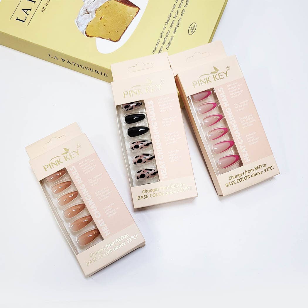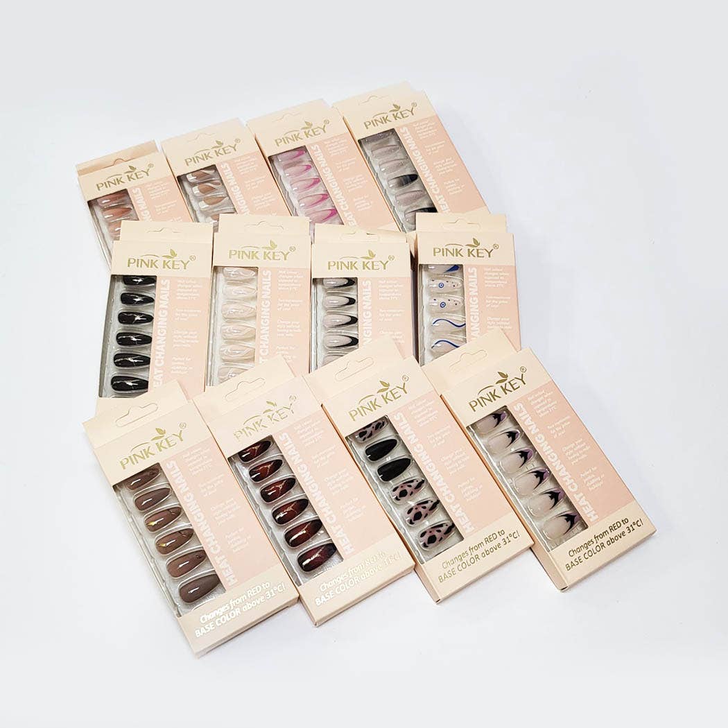 Color changes from red to color shown when above 37 degrees! Pre Glued Press On Nail Set. Change from Red to assorted colors. Fun and stylin!