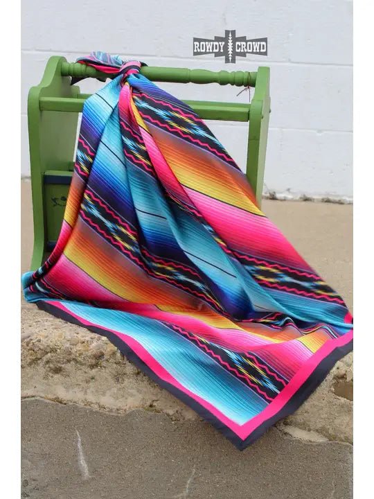 Unleash your wild side with the Serape Aztec Wild Rag! This colorful accessory adds a punch of personality to any look. Versatile and stylish with its eye-catching print, this 100% polyester scarf can be worn in multiple ways. Show off your bold and playful style with this must-have addition to your wardrobe!