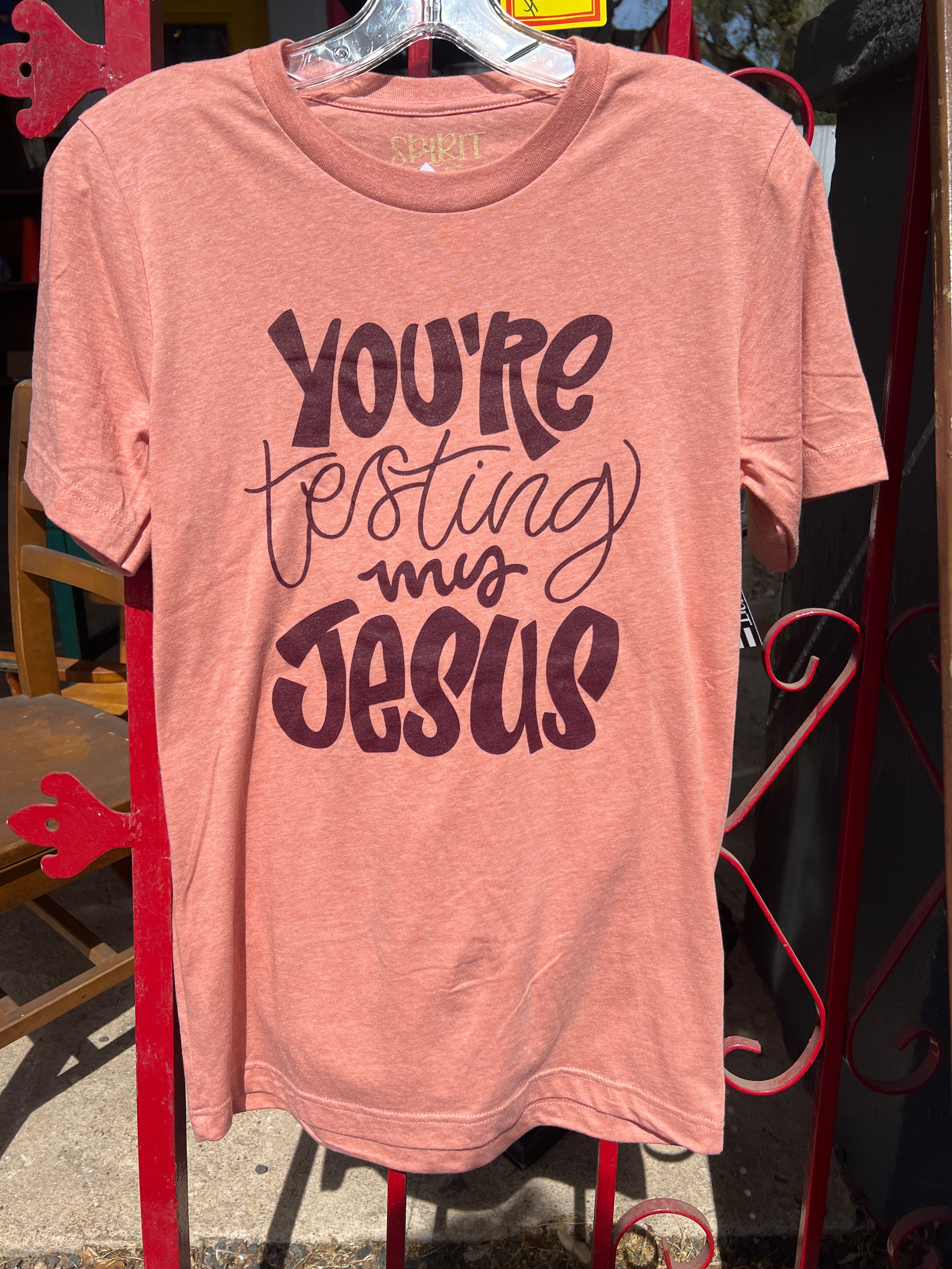 Get ready to test your faith in style with our Testing My Jesus T-Shirt! Made with high quality materials, this shirt is perfect for showing off your devotion in a trendy way. Don't be afraid to make a statement and spread the message of love with this quirky and fun design. (Pun intended.)