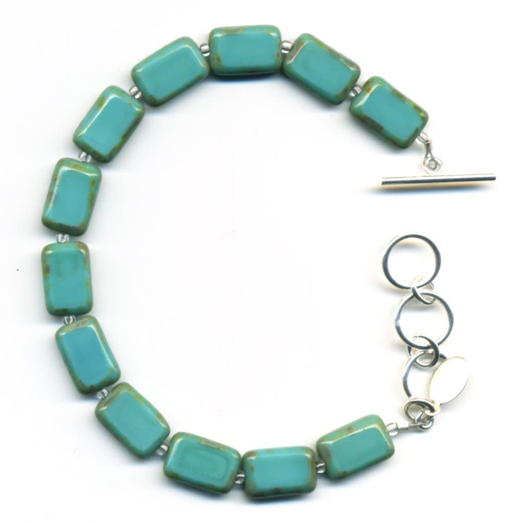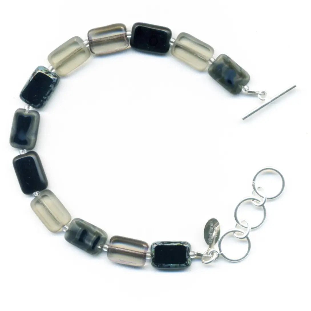 This multi-colored adjustable-length bracelet has been a steady customer favorite. These special "Picasso Windows" are exquisitely handcrafted glass tile beads from the Czech Republic. Sterling silver toggle adjusts to 3 sizes to fit most (size adjusts from 7 1/4 " to 8 1/2").