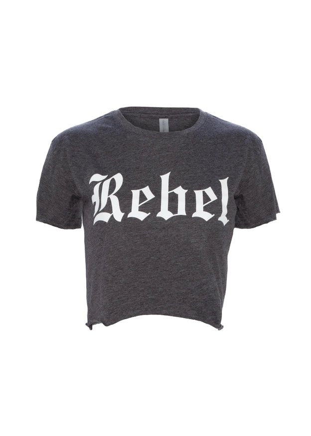 Feel the power of rebellion with this dark grey, raw-edge cropped rebel shirt! It's made of a soft poly-cotton blend and available in sizes S-XL, so you can find the perfect fit. Turn heads at your next party or concert and let your sense of adventure shine! It's time to unleash your inner rebel.