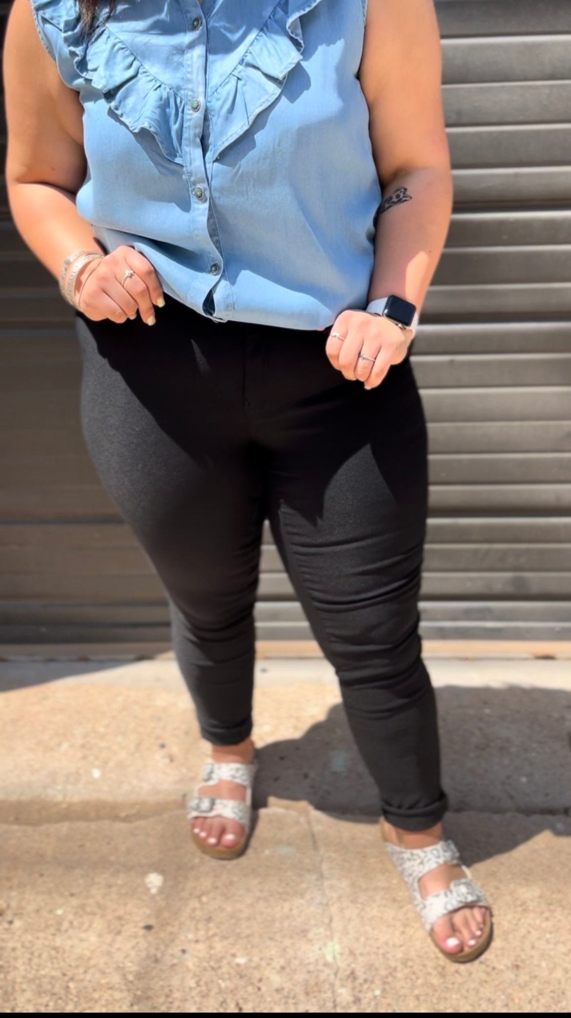 Junior plus size hyper stretch skinny jean is fit to contour your body and feel like you are wearing leggings, all while making you look fabulous! With specially constructed hyper stretch fabric, this pant is extremely comfortable, flexible, and one of a kind! Don't believe the HYPE? Experience one of the most stretchy and comfortable pants ever made by YMI. Featuring front faux pockets, single button with zip closure, and belt loops.
